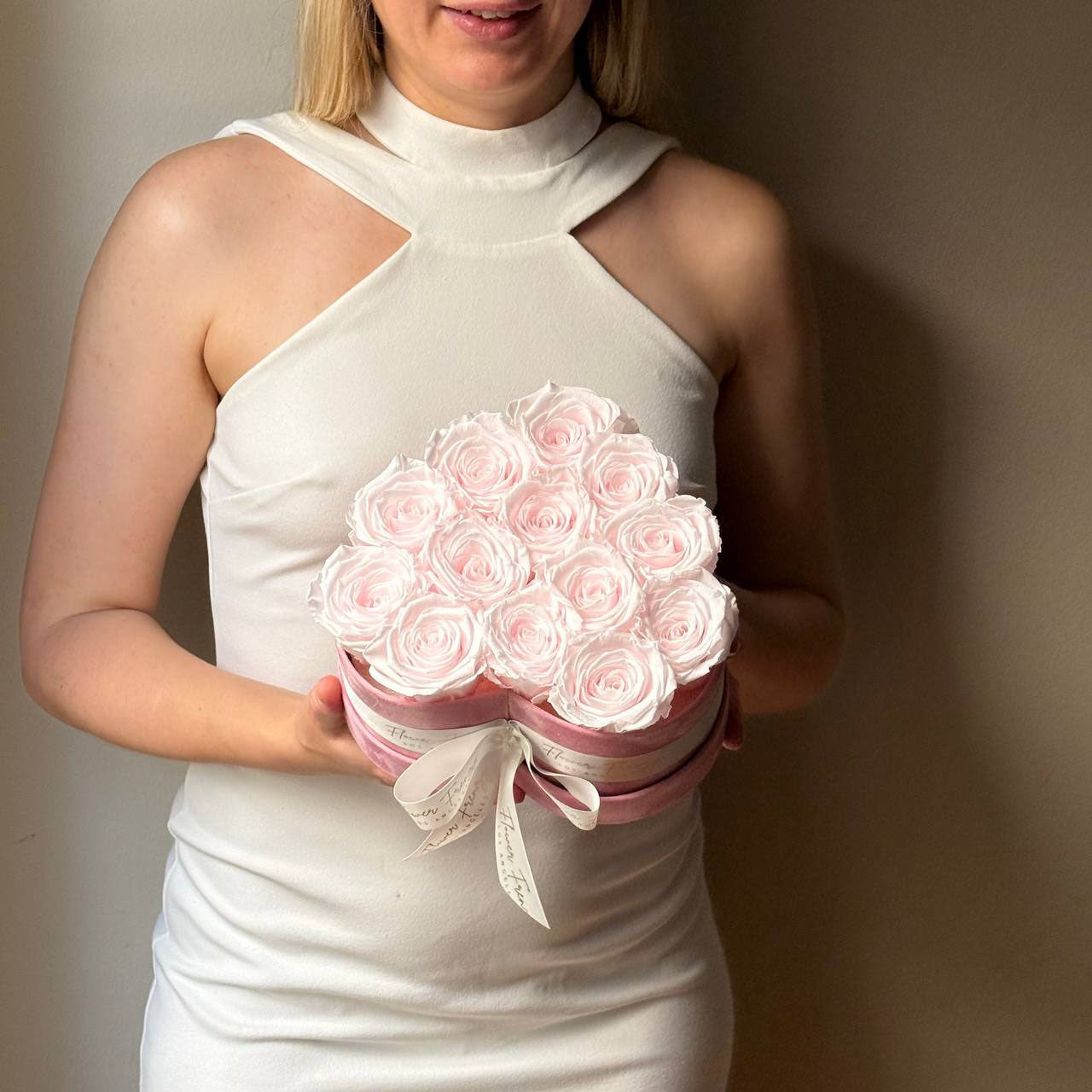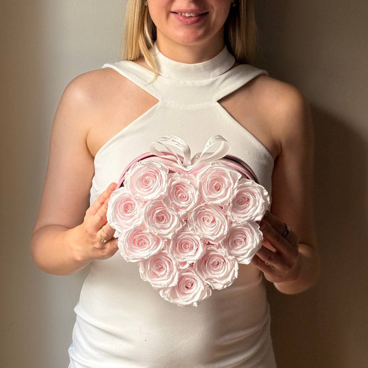 Elegant preserved roses arranged in a heart box — a lasting gift for anniversaries, Valentine’s Day, and special moments.